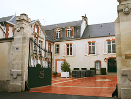 プレスティージュ・ブランドとしての知名度が高いメゾンだが、その建物は実に可愛い、プチホテルの趣。 サロン/ドゥラモットを訪問した前日、私たちはシャンパーニュに入った。16時30分にシャルル・ド・ゴール空港(CDG)に着き、パリ市内を経由せずダイレクトに、新たなシャンパーニュ地方の玄関口となったTGV シャンパーニュ=アルデンヌ駅へ。そこからローカル線に乗り換え、さらにランス駅からタクシー、7日間のシャンパーニュ探訪のベースキャンプとなるアイ村のプチホテルに到着したのは22時近く。その翌朝向かったのが、ここサロン/ドゥラモット。