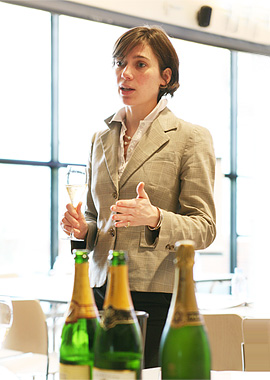 ディギュスタシオンを担当されたC.I.V.C.のワイン研究員、ヴィオレーヌ・プリヴェさん。 シャンパーニュはやはり素晴らしい。それは他の地域のスパークリング・ワインと比べての優劣で語っているわけではない。正直にいえば、またシュワリスタ・ラウンジ編集長という立場を考えずに言うなら、お気に入りのスパークリング・ワインはいくらでもある。デイリーでわいわいとやるなら南オーストラリアにとても楽しいスパークリング・ワインがある。独特な乾き具合とでもいうのだろうか…スペインのカヴァに美しい太陽を思い浮かべることもある。最近はドイツのイメージを一新してくれた辛口の見事なスパークリング・ワインにも出会った。日本でも、シャンパーニュ方式ではない「日本食」にあうスパークリング・ワインの造り手にお会いする機会もあった。ではなぜ、その中にあって、シャンパーニュは素晴らしいのか。きっと、僕と仲間たちは、それを伝えていく一端を、この滞在で、勝手にかもしれないけれど担うことになったのだろう。シュワリスタ・ラウンジの記事、そして活動全てが、その答えを紐解き、伝えていく作業。