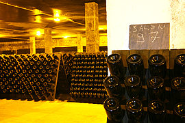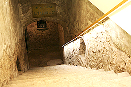 モダンな雰囲気で著名なサロンだがカーヴへの階段は歴史を感じさせるもの。その奥には垂涎のオールド・ヴィンテージが…。