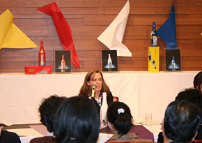 新作ボトルのプレス向け記者会見。当主ピエール・エマニュエル・テタンジェ氏の娘であり、同社のマーケティング部クリエーティブディレクターのヴィタリー・テタンジェさんが来日してのお披露目となった。
