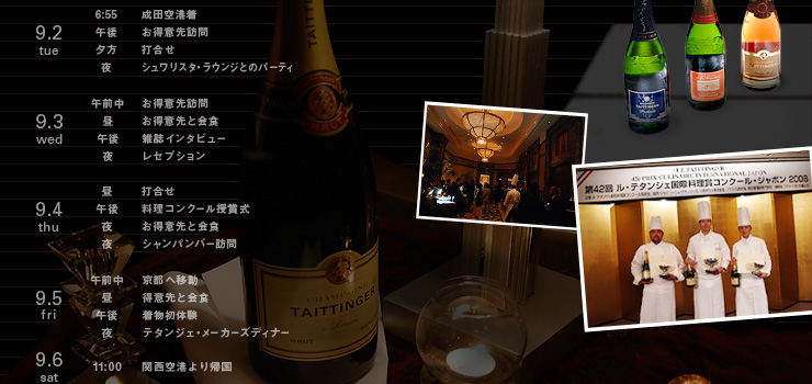 9月に来日されたテタンジェのマーケティング・ディレクター、ヴィタリーさんも、やはり世界を駆け巡るメゾンのキーパーソン。当主ファミリーとして「外交」も重要な仕事。今回の日本滞在中もパーティやコンクール出席など様々なスケジュールをこなしました。