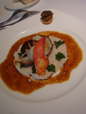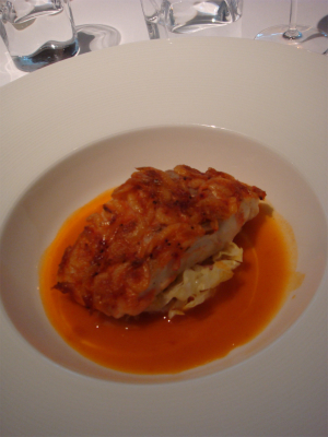 僕のみがオマール海老アレルギーなので、桜鯛のポワレをサーヴされました。