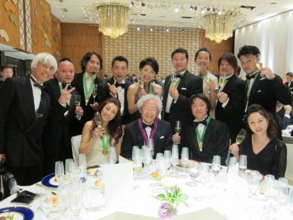 シュワリスタ・ラウンジ創設メンバー6名も全員集合、メダルをつけて出席。シャンパーニュ騎士団日本支部の稲川総領事、新たにシュヴァリエを叙任した美術出版ホールディングスの大下社長、ワインスペシャリストの沢樹舞さんを囲んで記念撮影パチリ☆