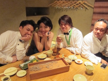 シュワリスタ・ラウンジ主宰の中川さんと岩瀬編集長、DIVIN&Albenteオーナーの宮崎さんと共に夜更けの三次会@恵比寿のお蕎麦屋さん。やっぱりこういうのが和むなあ(笑)